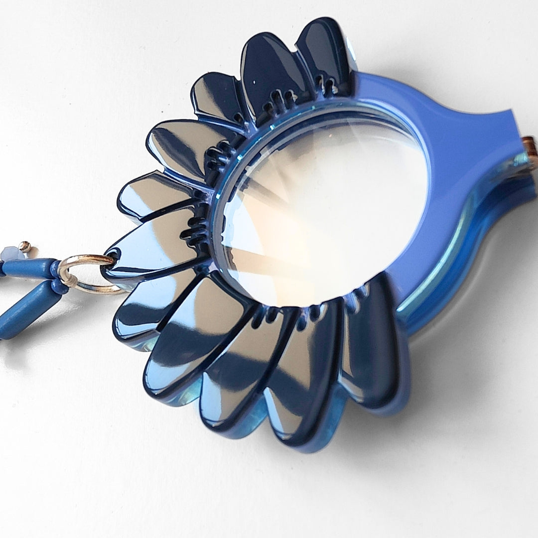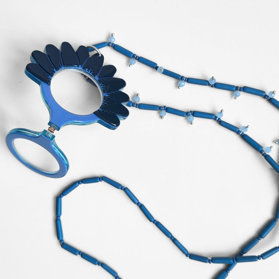 ¡¡Descubre nuestras gafas de Margaritas!! Realizadas en acetato de triple capa en color Azul, nuestras margaritas están llenas de color y alegría. Acabado con collar de bolitas de vidrio en tonos azules y anilla plateada, serán el complemento perfecto para tu look de primavera.