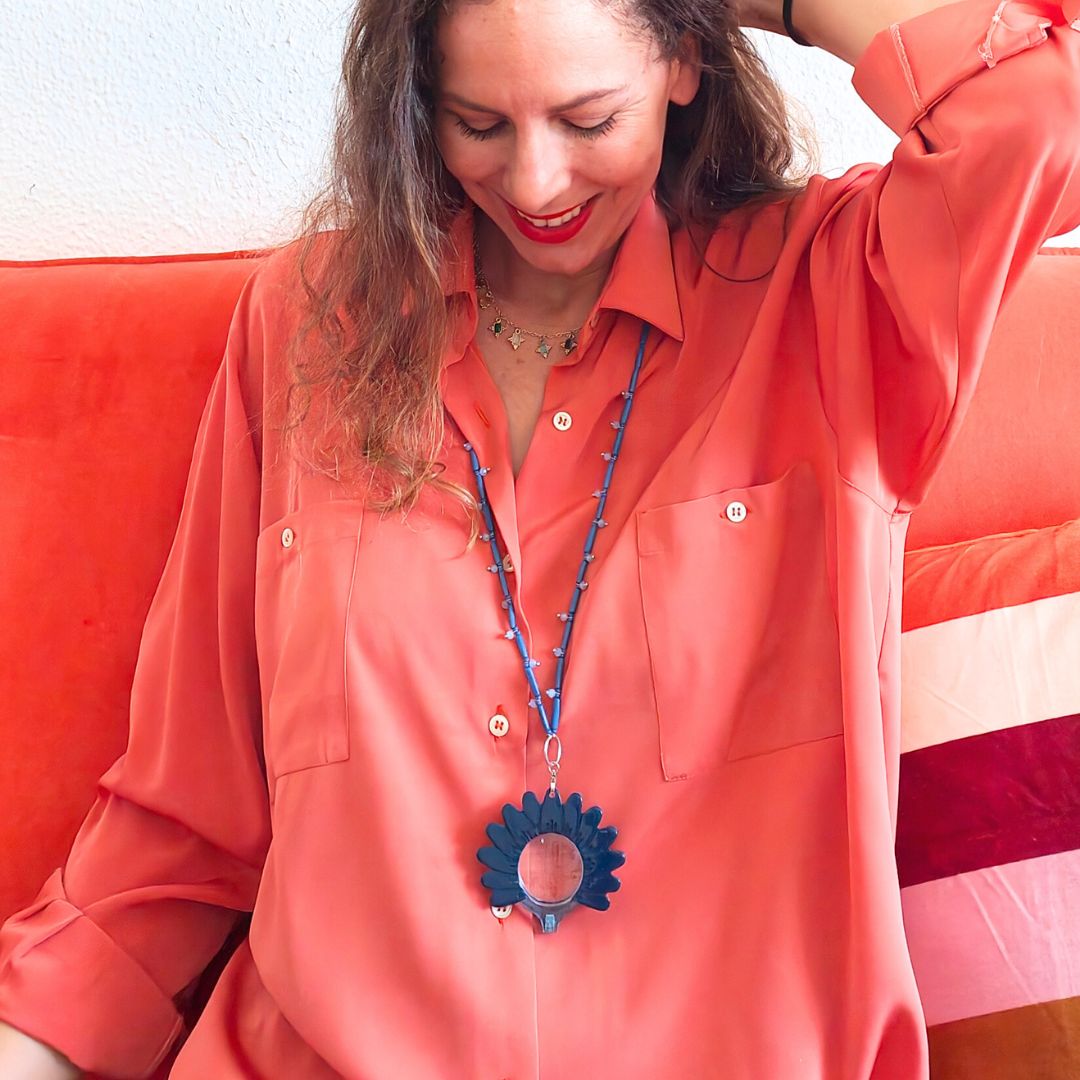 Por eso es preciso tratarlas con cuidado para que no se rayen los materiales. Intenta siempre que al guardarlas estén por separado los collares y los medallones, especialmente si el collar es de cristal, ya que pueden rayar el acetato y las lentes.