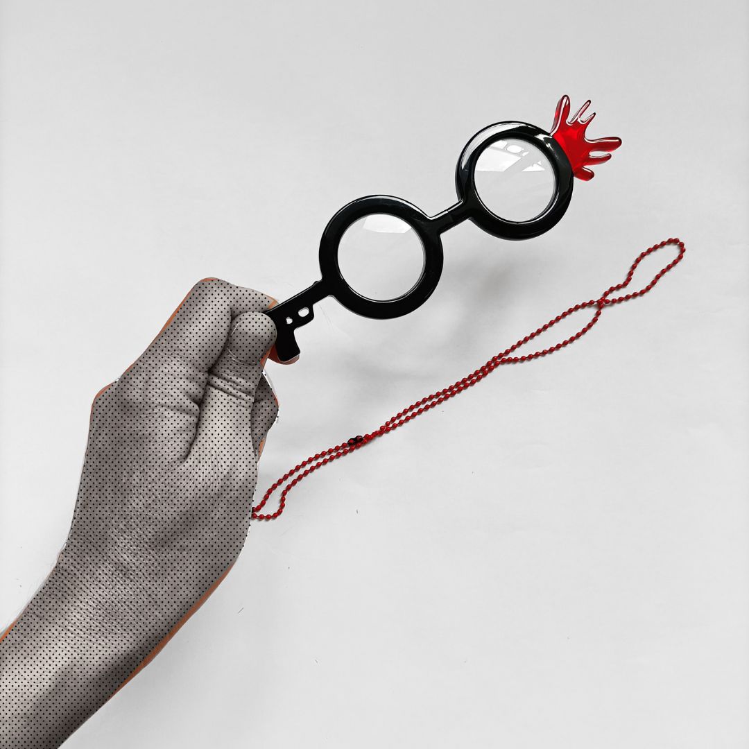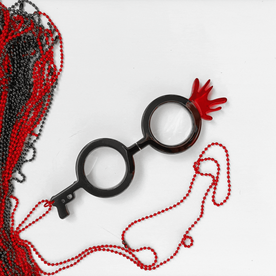 Realizada en acetatos negro y rojo y con cadena esmaltada en rojo. Una apuesta muy pictórica que hará las delicias de los más inconformistas.