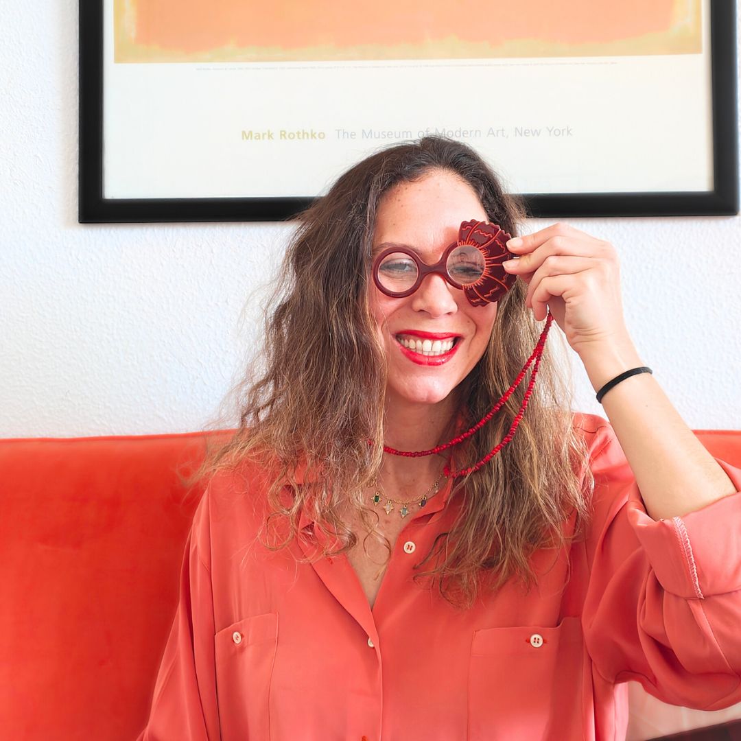 The frames are made of cellulose acetate, organic lenses and the necklaces vary according to the model: brass, steel, leather, suede, velvet, crystal, mother-of-pearl, natural stones, wood, bone.