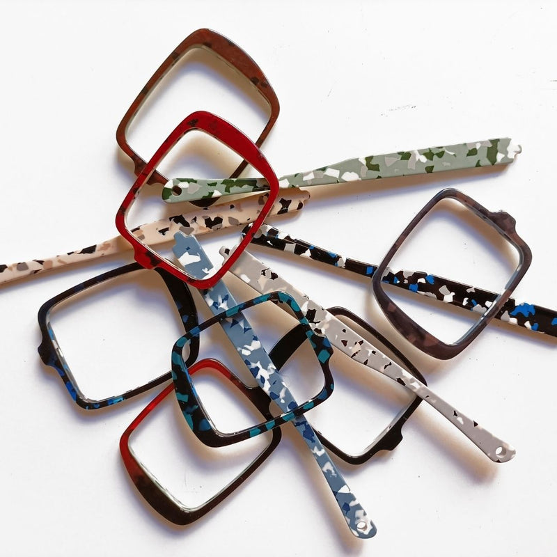 Una vez que la idea y el diseño están definidos, el siguiente paso es enviarlo a nuestra fábrica, donde cortan y tallan una a una las planchas de acetato de acuerdo al diseño.