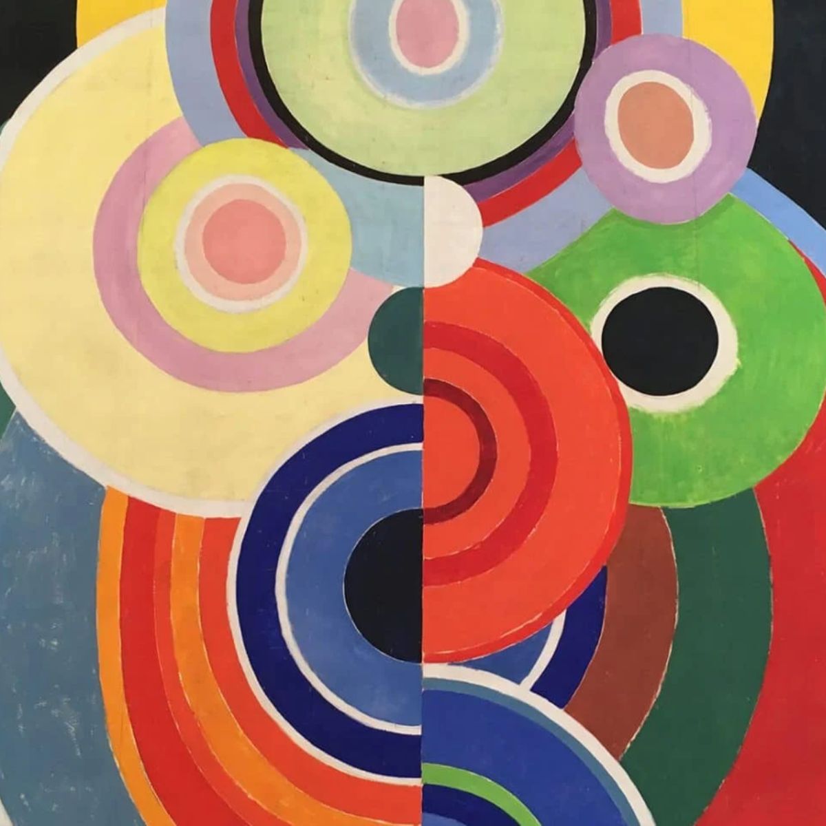 La inspiración nace del universo artístico de Sonia Delaunay, especialmente de su uso del color y de los círculos concéntricos como forma de crear ritmo y movimiento. La superposición de formas circulares y los contrastes cromáticos dan lugar a un diseño gráfico, dinámico y lleno de energía.