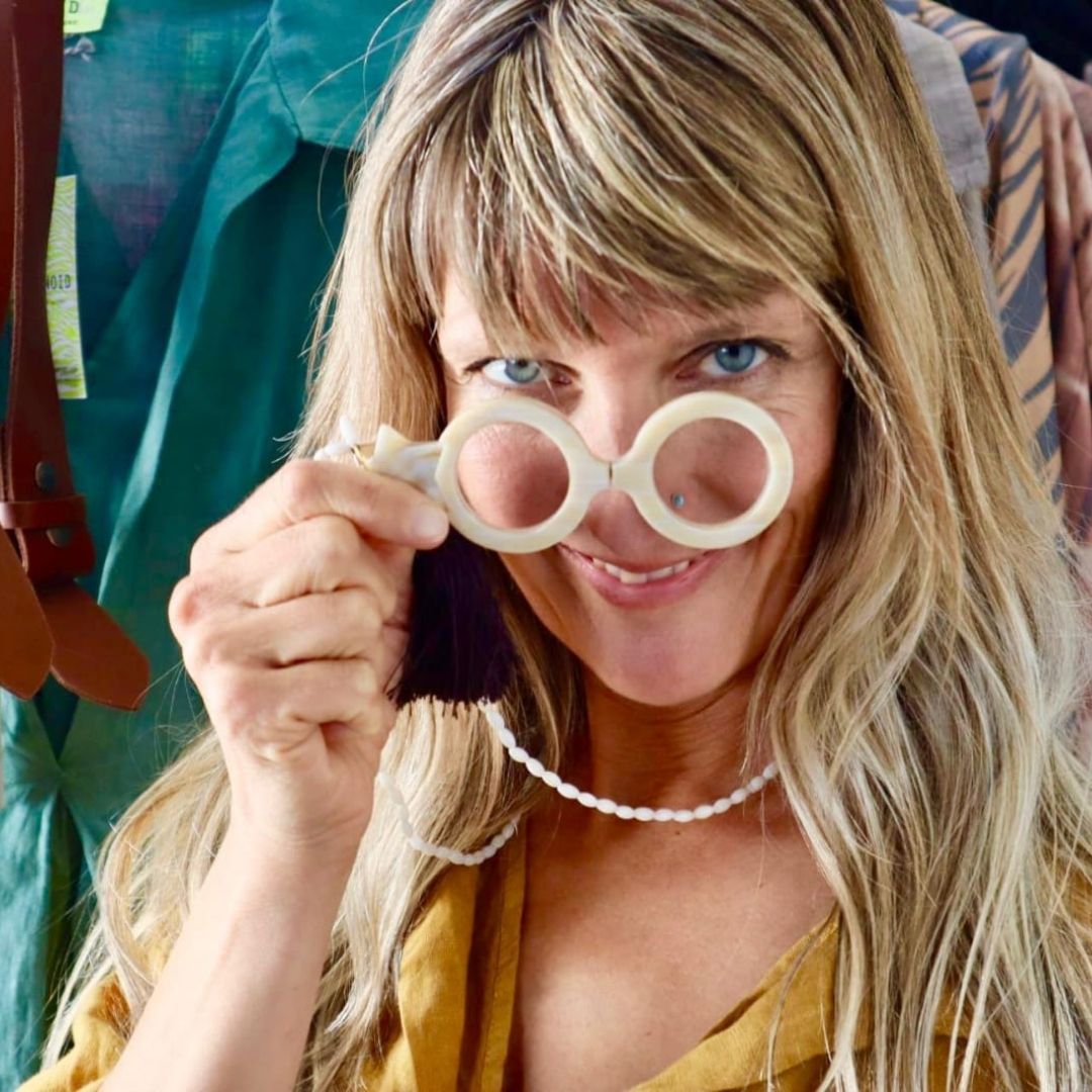 Las monturas están realizadas en acetato de celulosa, lentes orgánicas y los collares varían según modelo: latón, acero, cuero, antelina, terciopelo, cristal, nácar, piedras naturales, madera, hueso.